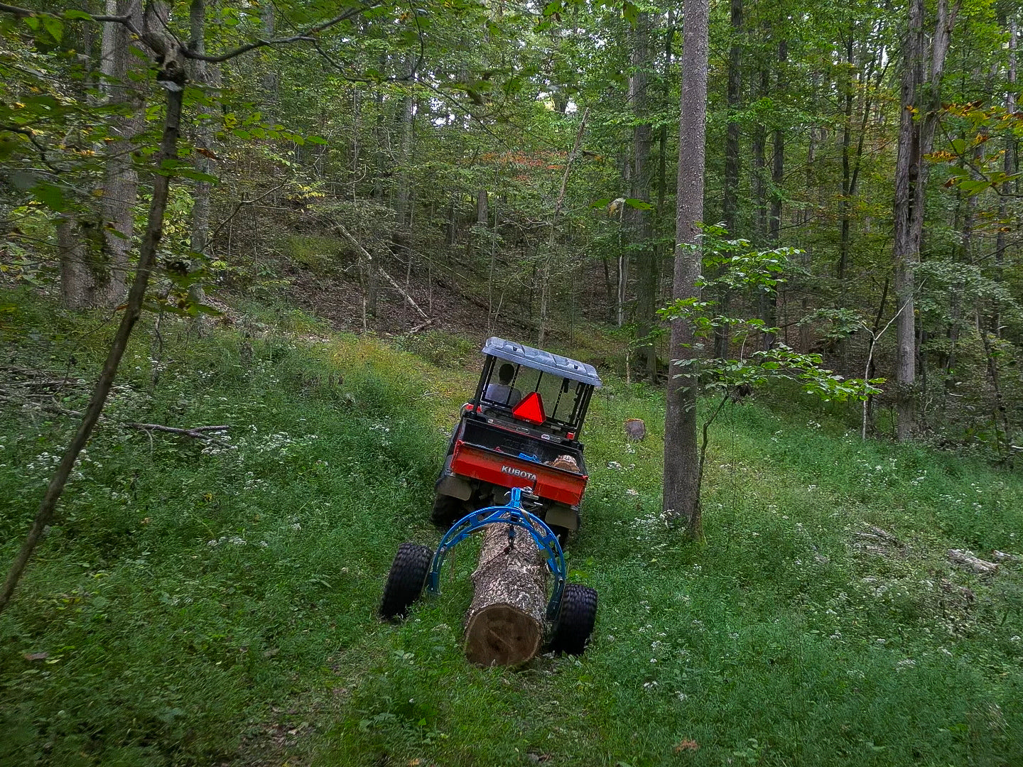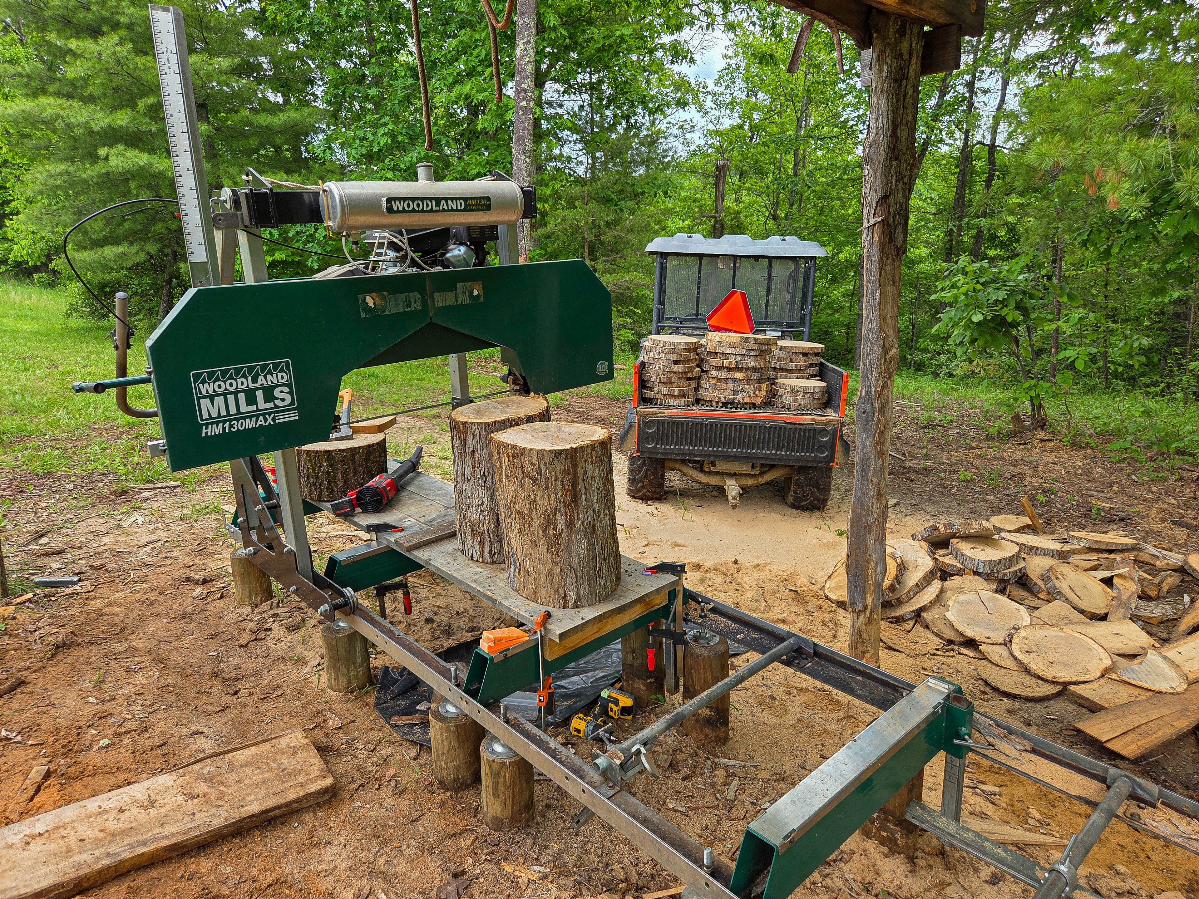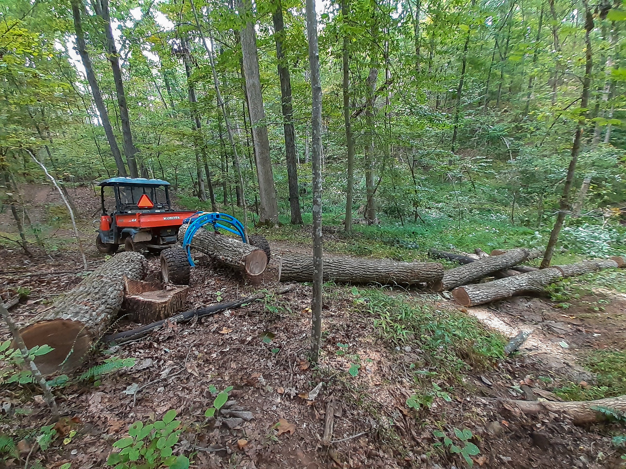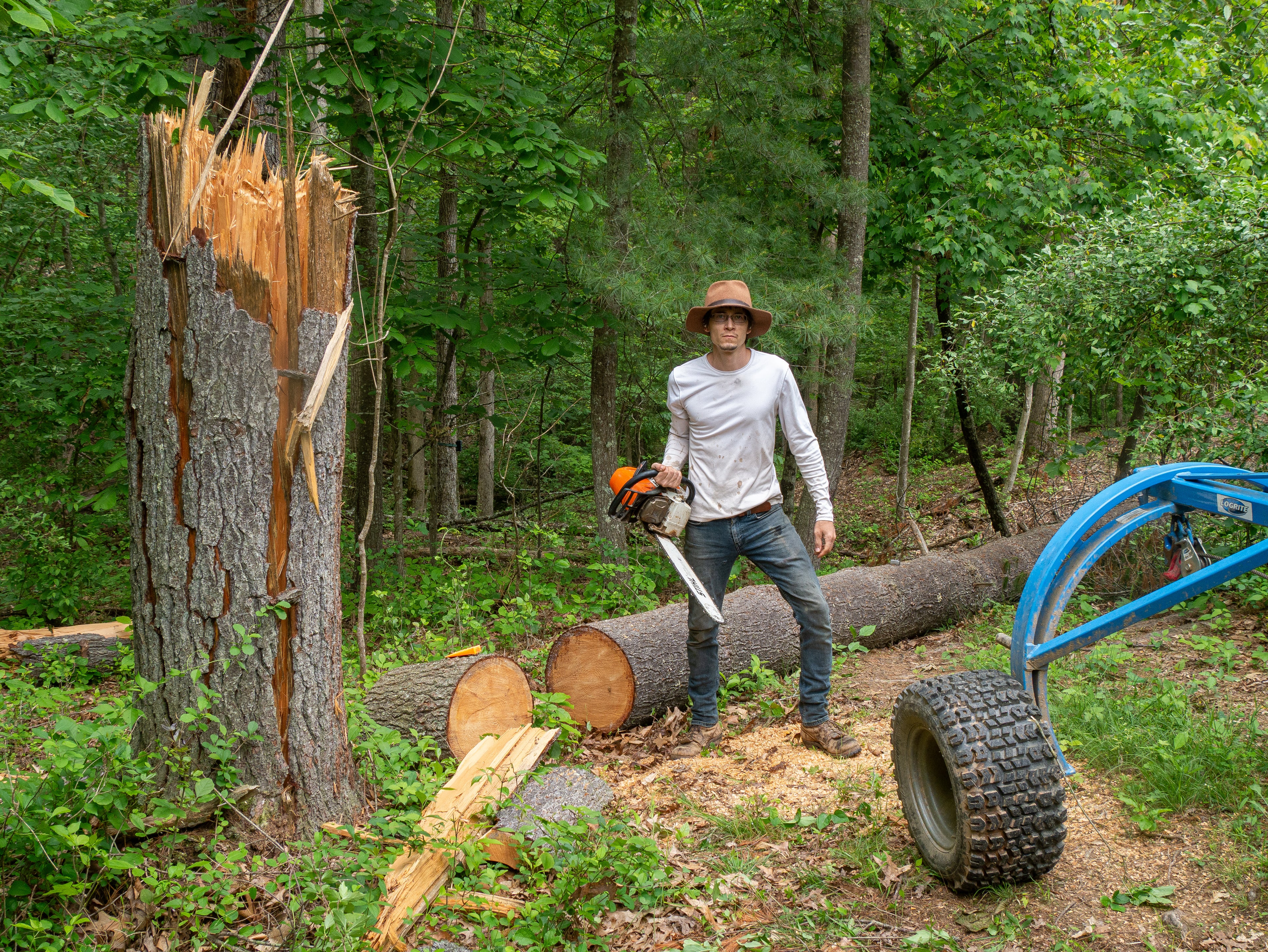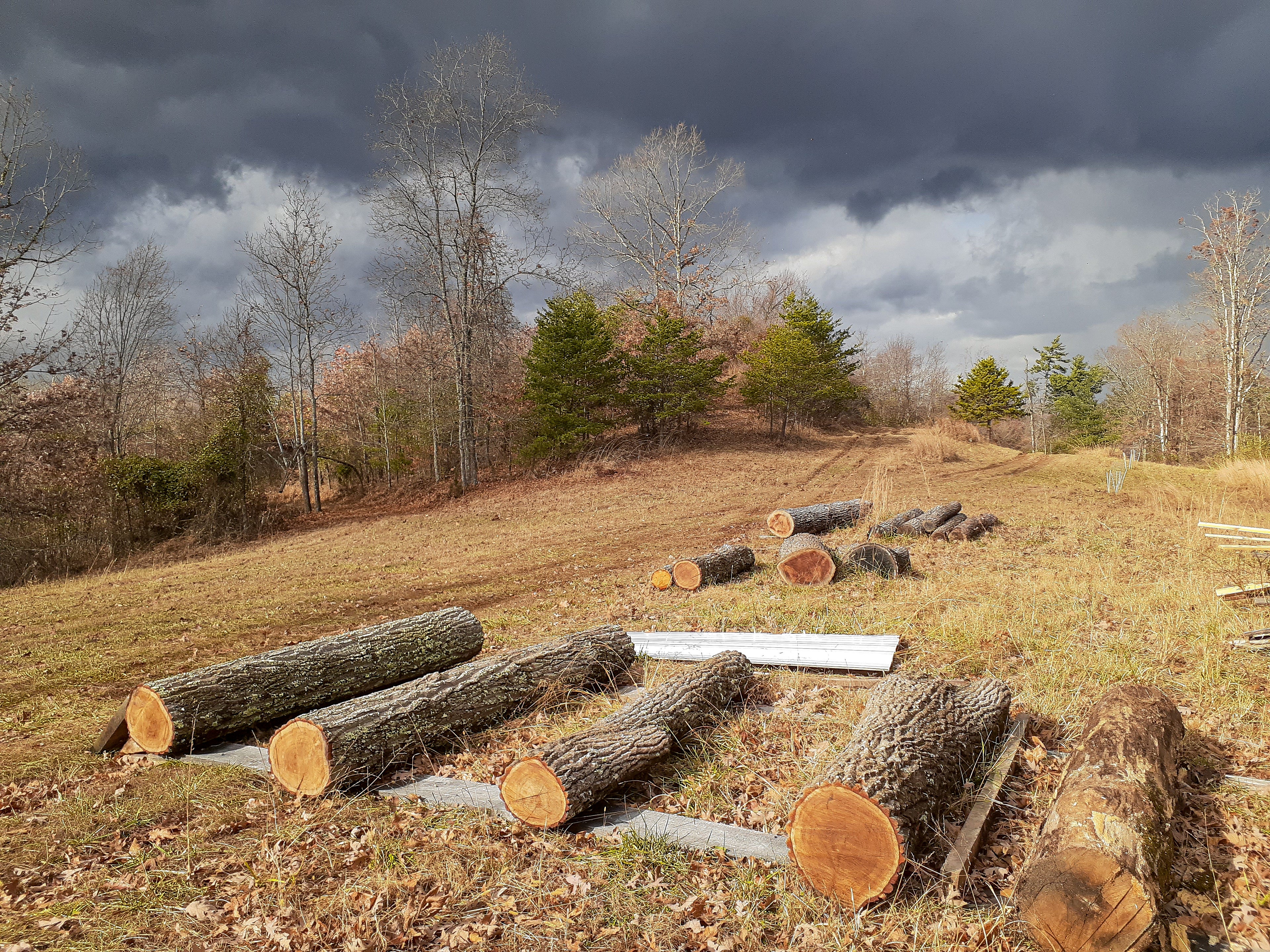 Storms bring down several large trees on our 225 acre property every year. These trees become the raw materials for our solar-powered homestead business.