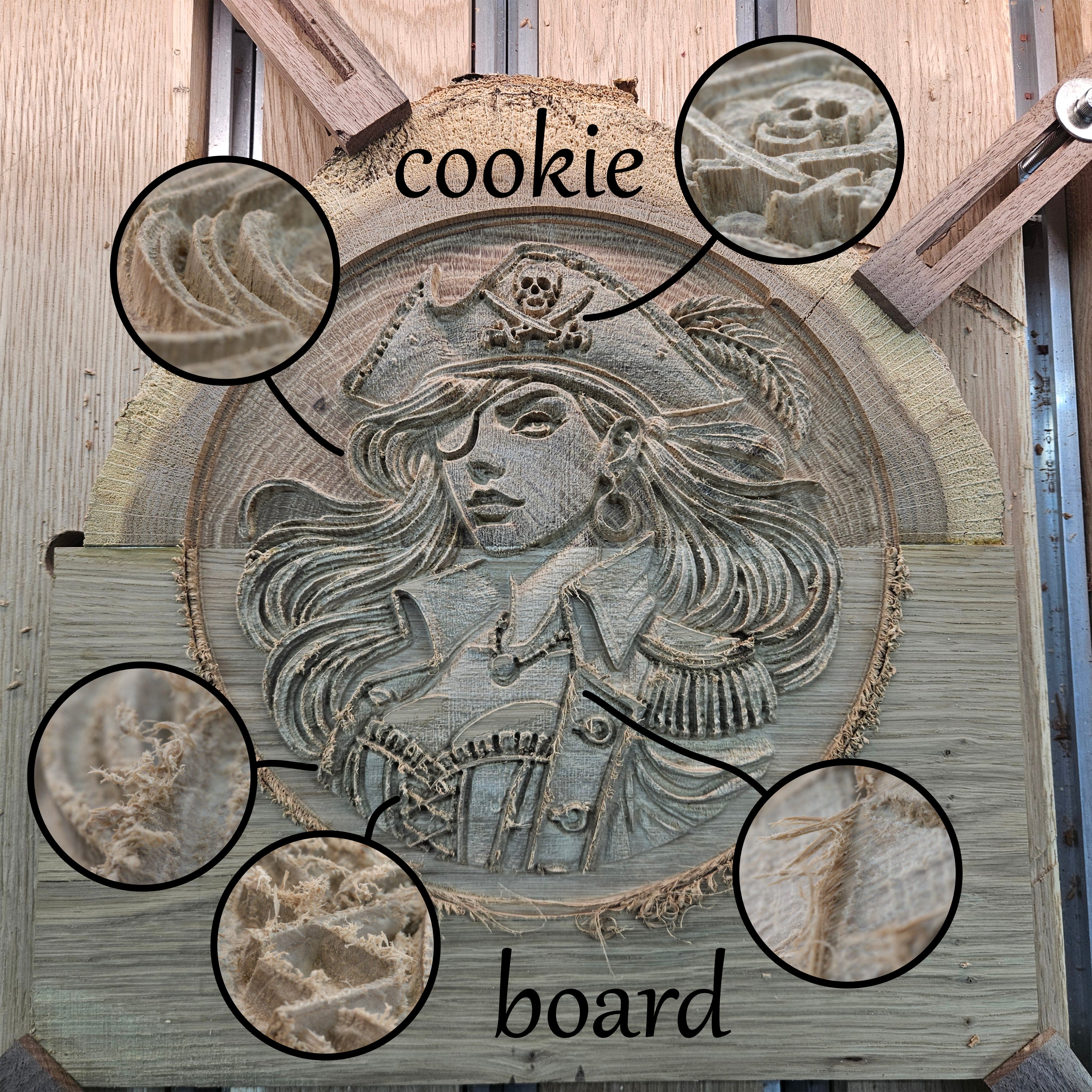 - Board - The bundle of straws is laying on its side. The engraving process cuts the top layer of straws into a bunch of little segments that chip away easily between the growth rings.